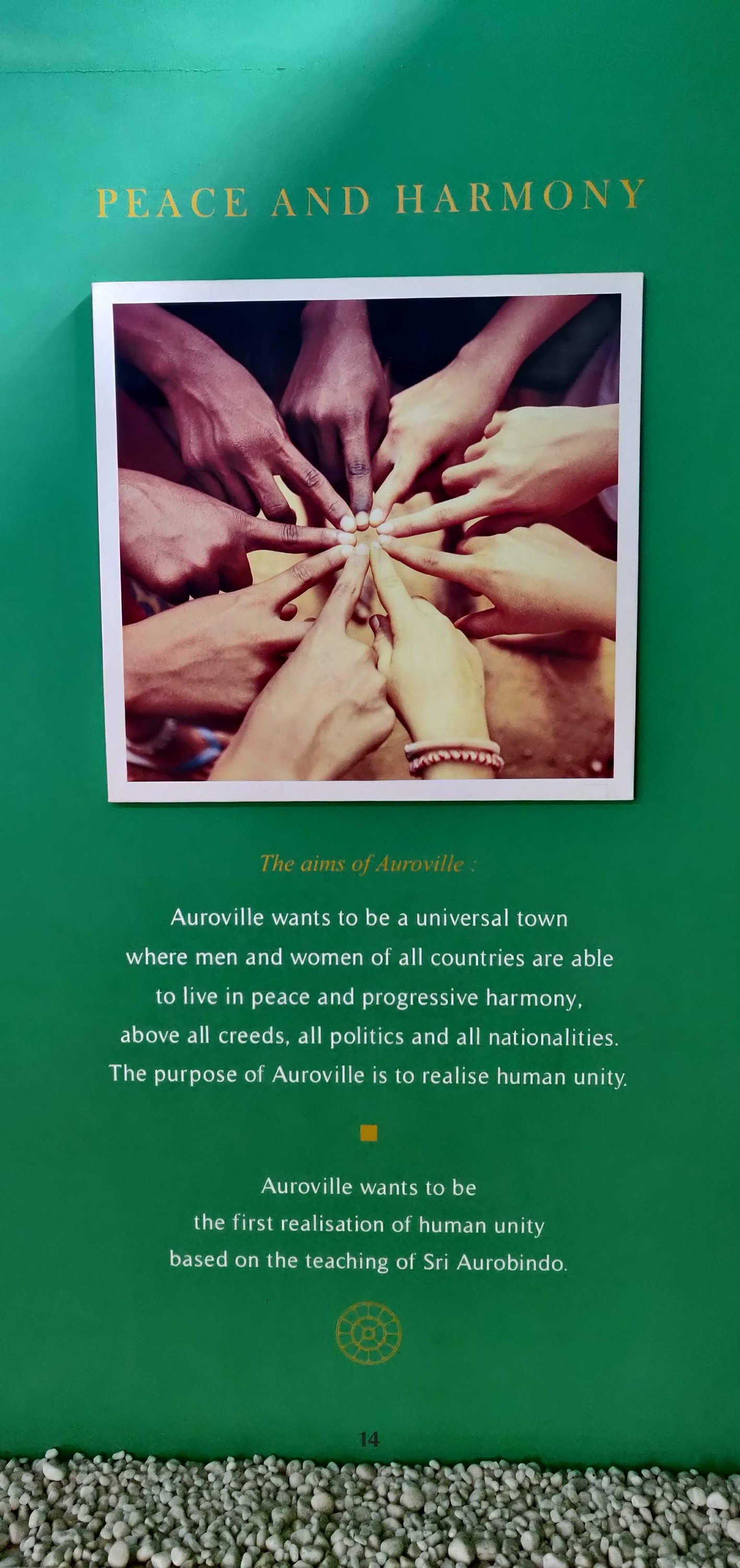 Auroville is an experimental township. As the motto reads “it wants to be a universal town where men and women of all countries are able to live in peace and progressive harmony above all creeds, all politics and all nationalities. The purpose of Auroville is to realize human unity.”