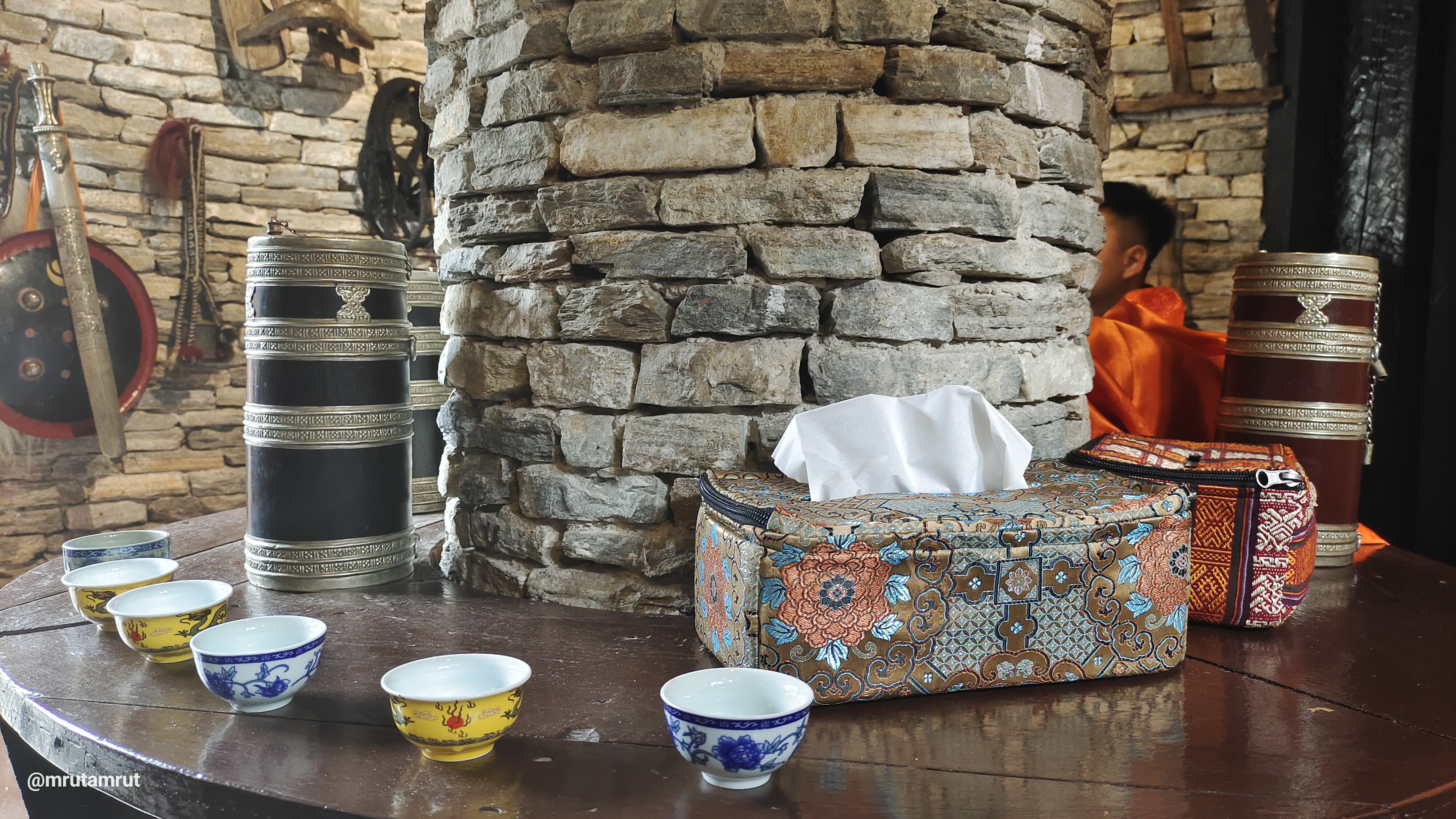 The terrain you have, and the twists and turns on roads around the mountains make the journey happily eventful! The next stay was in a neatly decorated cozy resort at Thimpu- your capital city. The weather changed here, there was a nip in the air. Also, I was surprised that there were no traffic signals, no honking, etc. to which our car driver Mr. Pasang bhai said ‘We drive on mutual understanding’. It is hard to imagine– people driving without honking, traffic signals, rash overtaking, etc. Being in a capital city that offered a slow life was amusing. I enjoyed visiting the live museum there – it gave me a glimpse of Bhutanese culture, cuisine, art, music, sports, and people. Learned that archery is your national sport; had local wheat wine; clicked pictures in mud-rammed houses, grooved with local dancers on folk songs, taught them some Bollywood dance steps, and tasted some yummy food along with butter tea. Met the Foot artist aka Pema Tshering- a craftsman affected with cerebral palsy. After his birth mother abandoned him, Queen Mother adopted him– his life’s story instills the belief that the mind holds unparalleled strength and helps achieve anything that you aim for!