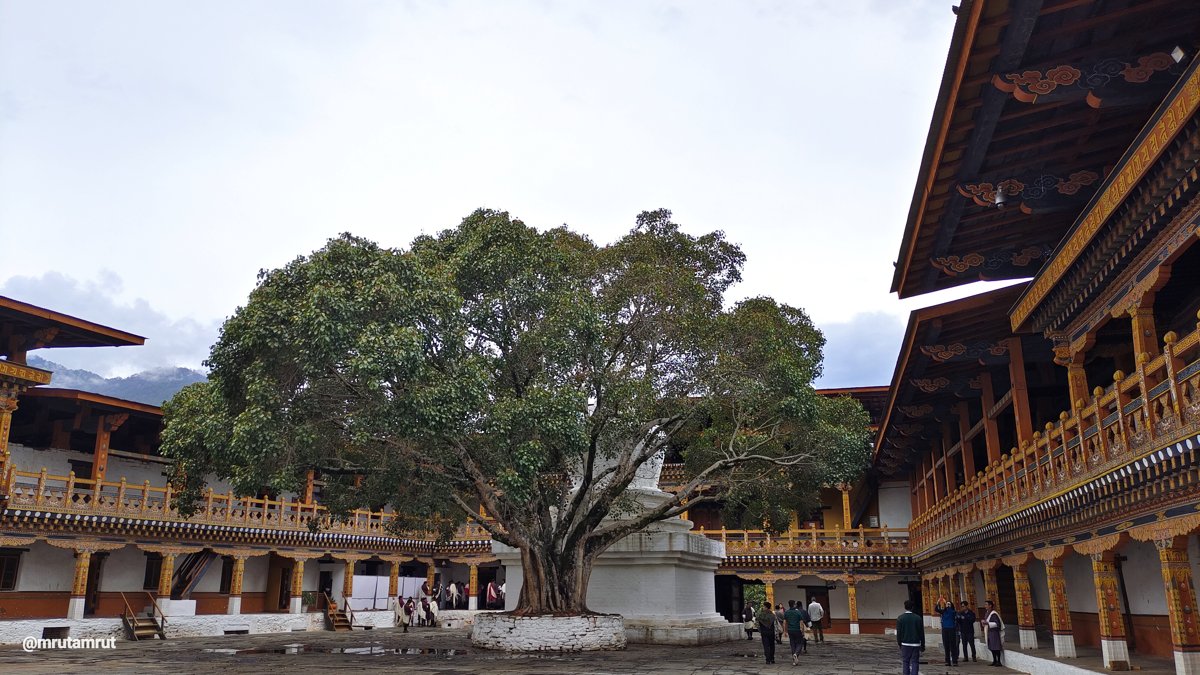 When we reached Punakha the air was moist and it looked like the rain had just paid the visit. We visited Chimi Lhakhang aka the Fertility temple where couples come to seek blessings to beget children. It is also called the city of phalluses. The belief is also that the phallus keeps the evil spirit away. Since the official working hours are 9 am to 4 pm all the tourist places are also closed early. This leaves lots of idle time in hand in the sense that one cannot run behind to tick the itinerary checklist. I loved this thing about you Bhutan. That gave me time to take strolls in the village, explore not-so-crowded markets, interact with local people play with children on the street and at times simply absorb the surroundings. The next day we visited the Punakha Dzong – it is a most scenic sacred monastery. It is the symbol and center of the rich Bhutanese culture. An old tree on its premises tells the time story more than the building itself. The place is filled with positivity and peace. The sight of monks chanting prayers, the vibrations that their chants created, and birds chirping the sound of the wind – become one divine sound if you listen to it with a still mind. Life is meant to be lived like this right? Finding the rhythm, being part of the sound of harmony. Its geographical location intrigued me – as our guide explained it is situated between Pho Chhu- the male river and Mo Chhu – the female river, genders based on their force. Further reading discovered that it eventually meets the Brahmaputra River in our country- giving a feeling that we are all connected in some or the other way.