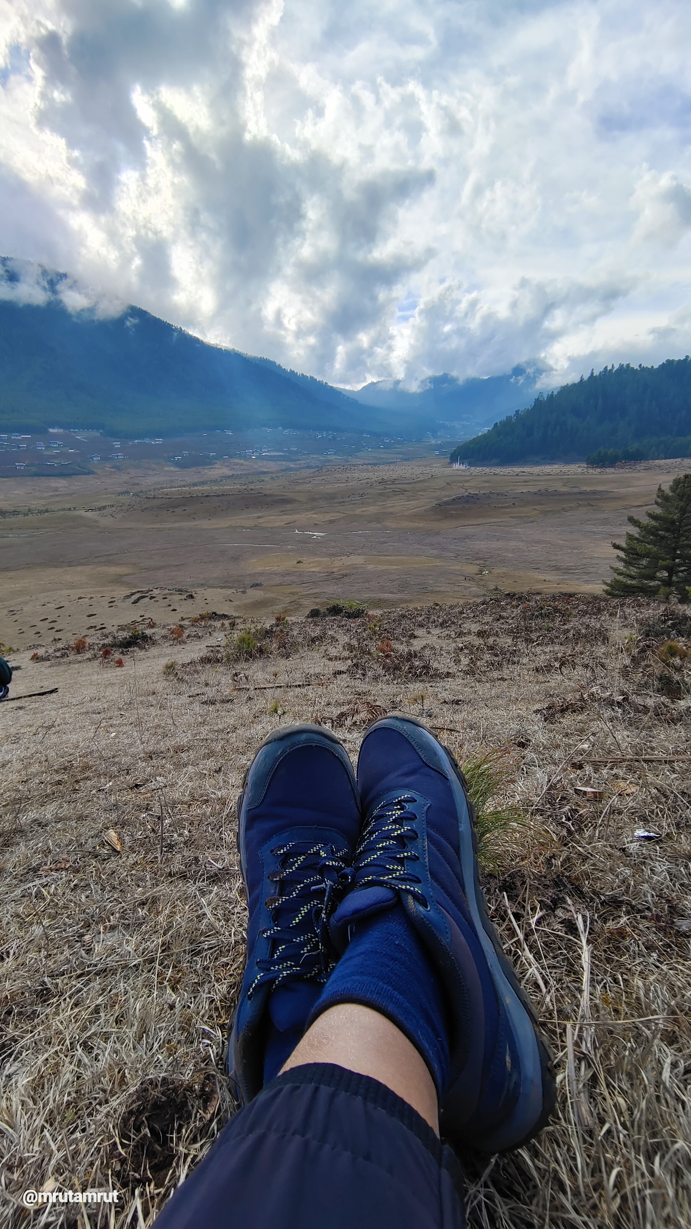 After Punakha, it was time to go to Gangtey- Phobjikha Valley. There were two options – a road journey or hiking and the latter was chosen! And it turned out to be a fulfilling experience. I was spellbound with its green lush landscapes and famous marshlands. Day, date, and time had no relevance then – lost these tracks while walking through pine trees, adoring wildflowers, spotting different birds, and sitting at a point where brushing wind against ears sounded like music and the vast marshlands became an enticing sight. Beyond those were Bhutanese houses made up of mud and wood– looked tiny from that distance – a rare sight in the city where my home is. As the village was nearing the sight of cows and yaks grazing reminded me of time spent as a child in my grandfather’s village back in India. The hosts of our homestay were a family of 5 grandpa-grandma and their 3 grandchildren. Youngest of the grandchildren Tensing – a toddler mingled up with us in no time- a child has no barrier – age, language, color, race nothing they embrace you with an open heart leaving you with no choice but to reciprocate in the same way. Most of your people are like that Bhutan! I’ve been trying local cuisines all through my journey. However, the food that I had here tasted like an authentic and yummiest one, especially Ema Datshi. The next morning scene in that homestay was somewhat similar to the households of my home country – the lady was busy in the kitchen, the gentleman in other chores, the eldest kid got ready early and left for school, while the youngest one woke up cranky and the middle one getting ready for his school rather lazily. We had our breakfast with the host family and keeping the warmth of their hospitality in our minds left for Paro. On our way, there was a Chorten – Pasang bhaiya drove around it in circles- as parikrama to seek blessings for a safe journey ahead. I recalled doing the same during my trip to Himachal (India) -Spiti Valley at Kunzum La. The route offered an astounding view of Jomolhari mountain ranges with an occasional hide & seek. We got a chance to revisit the Dochu La this time the weather was clear and could enjoy the view having ginger honey lemon tea with chocolate pastry – as a celebratory food item.